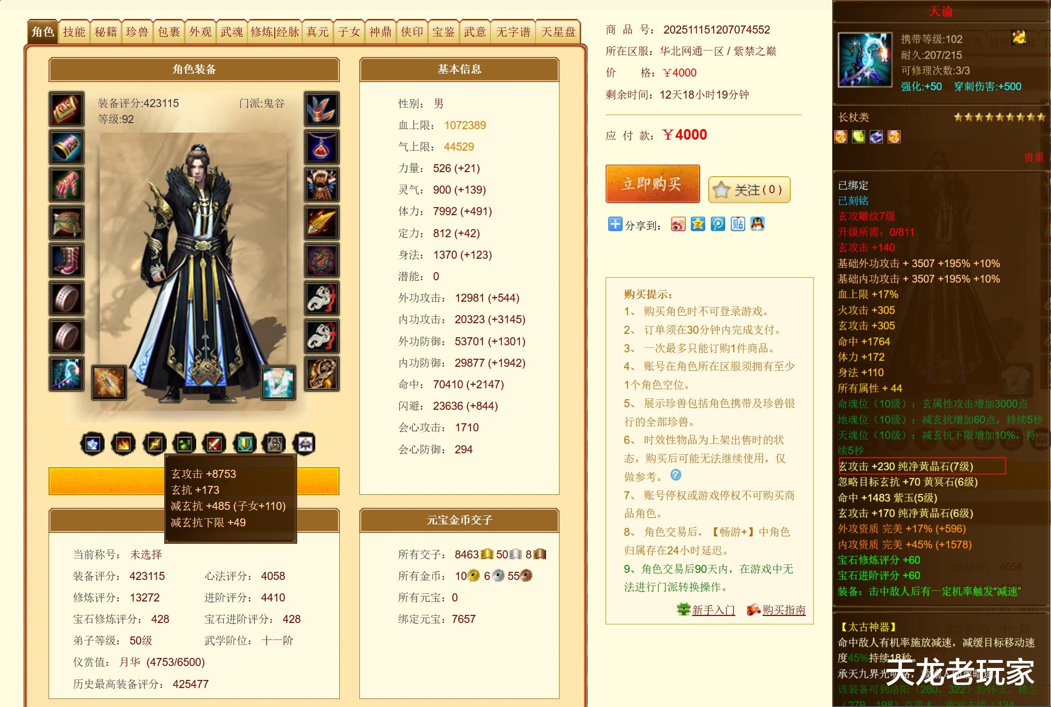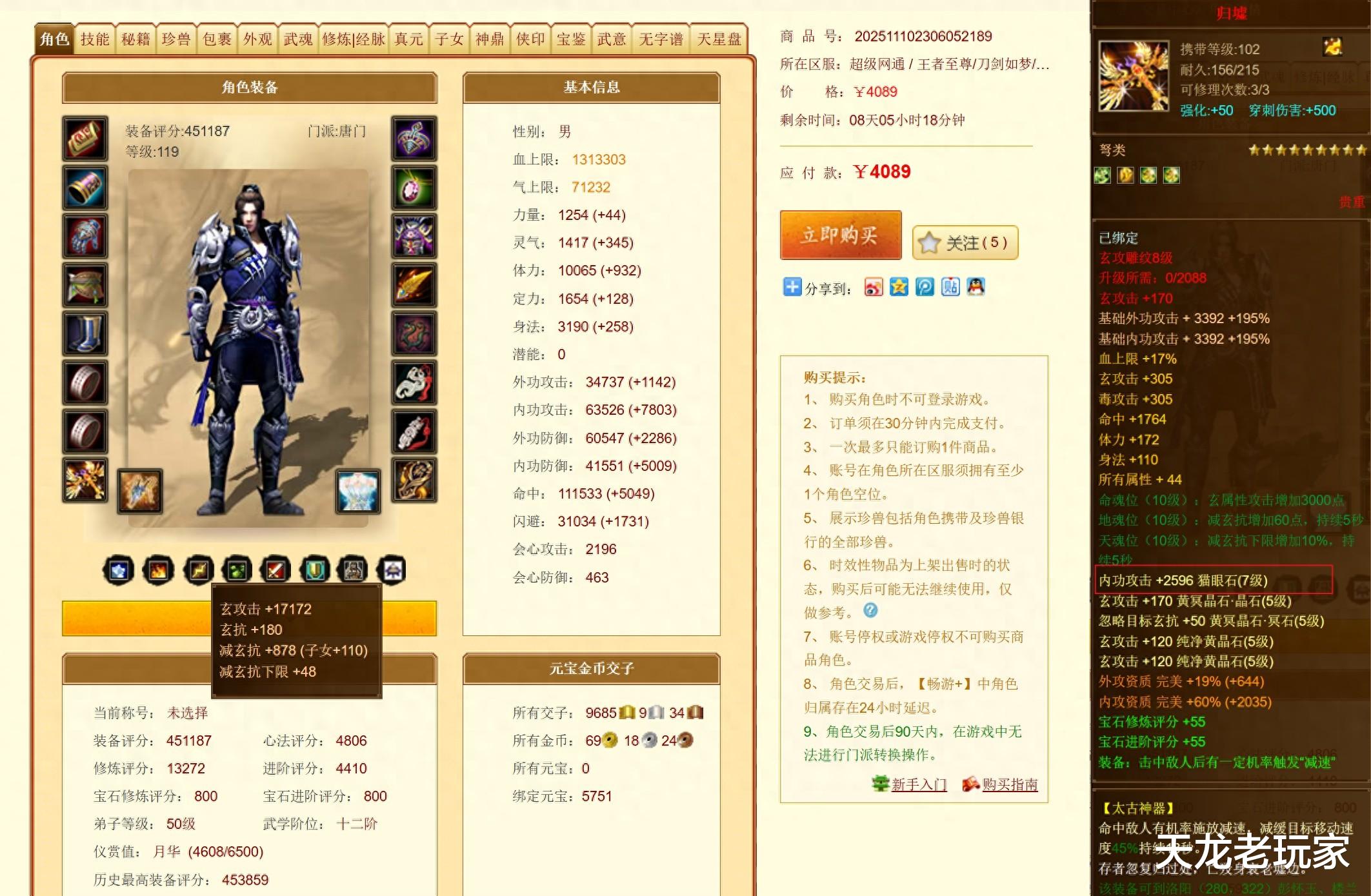 45万评分的玄唐门,神器上有一颗7级猫眼。