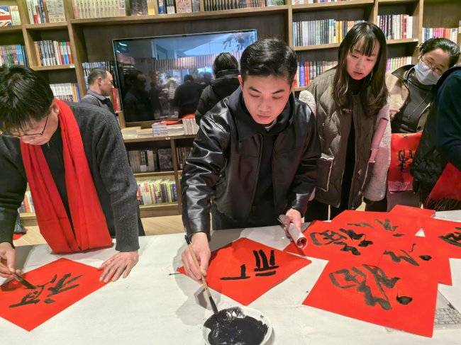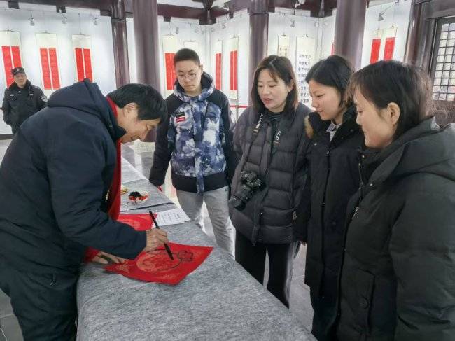 现场还设置了写春联、送福字的互动环节。一张张喜庆的福字、一副副吉祥的春联跃然纸上,不仅为现场增添了浓浓的新春年味,更让大家在动手创作中体验传统文化的乐趣,现场气氛热烈、其乐融融。