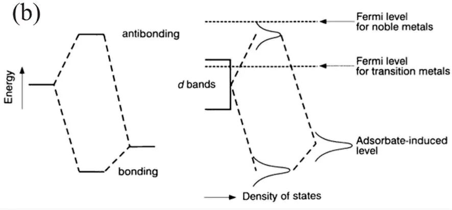 Ed),金属与反应物的轨道相互作用越强,吸附能越适中。