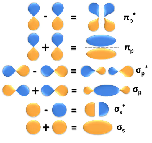 = c₁ψAMO:分子轨道波函数;ψA:参与组合的原子轨道波函数;c₁、c₂:组合系数,代表原子轨道对分子轨道的贡献程度,|c₁|² + |c₂|² = 1,归一化条件。