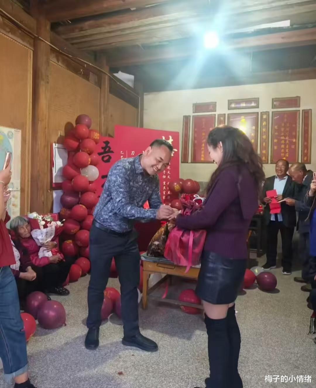 因为在乎,所以用心。尽管订婚宴在农村老家举办,他们还是将现场隆重装饰了一番,而在穿着打扮上也是盛装出席。