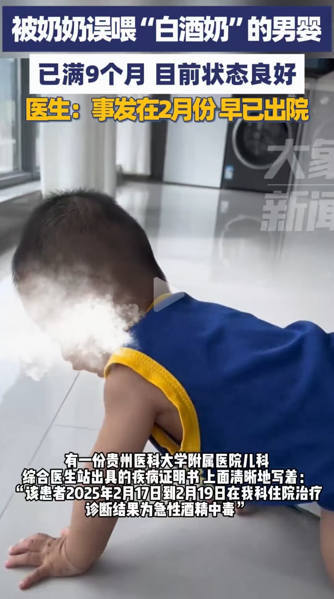家长群里都在讨论9月27号的一条“奶奶误喂白酒奶给男宝”的视频。
