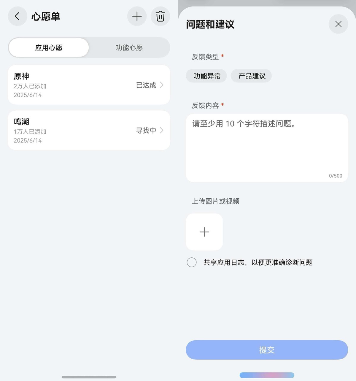 如果你希望某个应用上架鸿蒙版本,可以到“应用心愿单”里许个愿。要是觉得哪里用着不太顺手,或者有更好的想法,也可以通过“反馈建议”通道直接告诉华为。这些渠道持续开放,官方也一直有在倾听我们用户的声音。