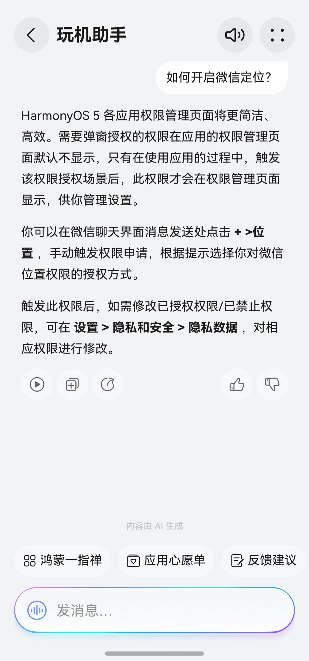 和朋友聚会,但不知道用微信发定位,直接提问:如何开启微信定位?玩机助手很快就给出清楚准确的解答。