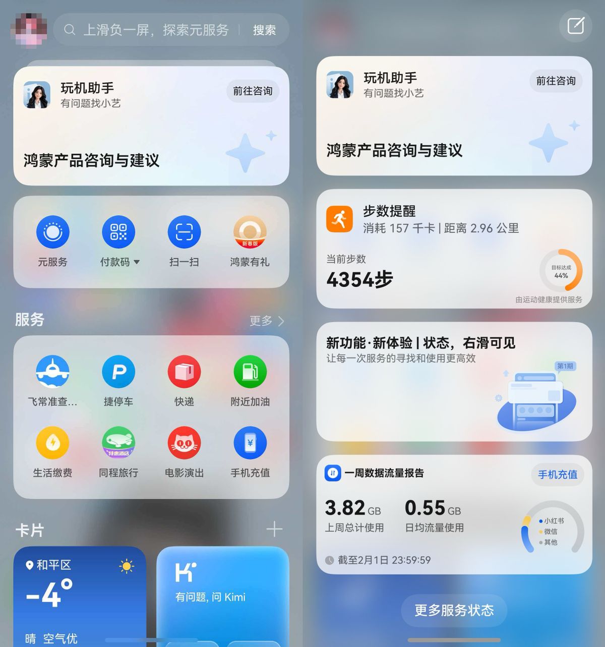 很简单,在手机桌面,向右轻轻一滑,就进入了“负一屏”。在这里找到“鸿蒙产品咨询与建议”入口,点进去。