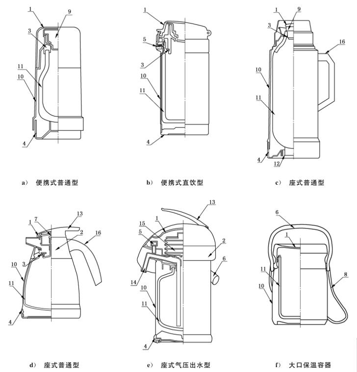 该标准主要适用于存放饮用水及其他食物的由真空面有镀层的双层玻璃真空瓶胆与外壳等组装而成的日用保温容器。主要包括便携式保温容器和座式保温容器两大类,根据主要部件的样式不同又可细分为:便携式普通型、便携式直饮型、座式普通型(保温瓶和保温壶)、座式气压出水型和大口保温容器。
