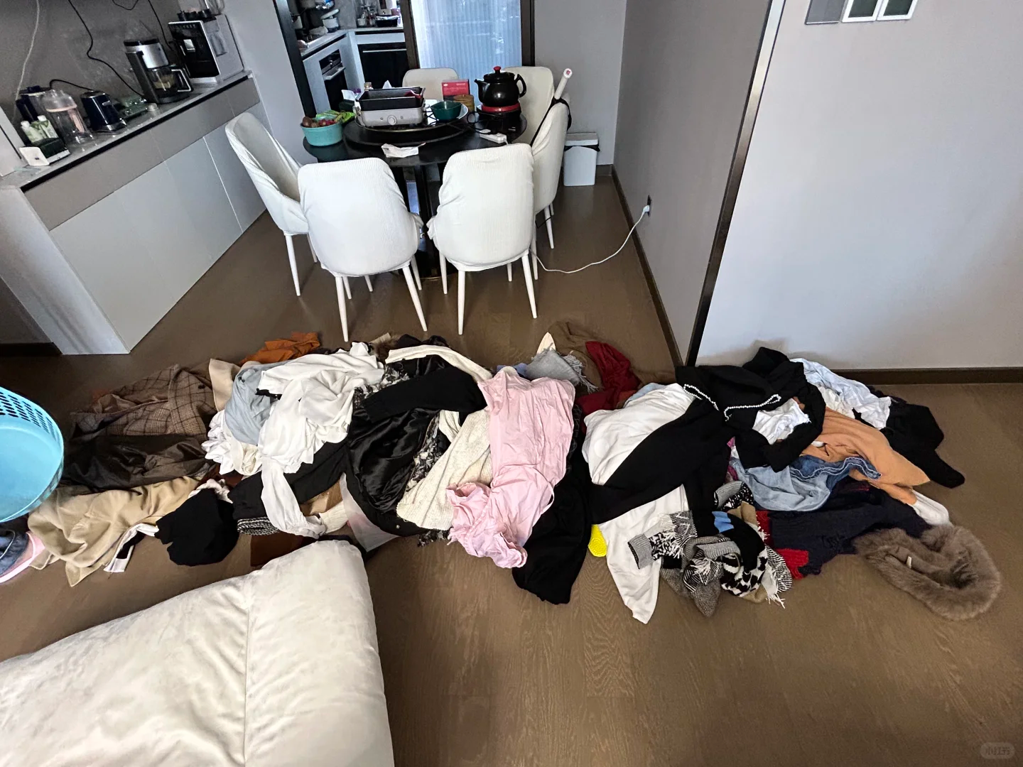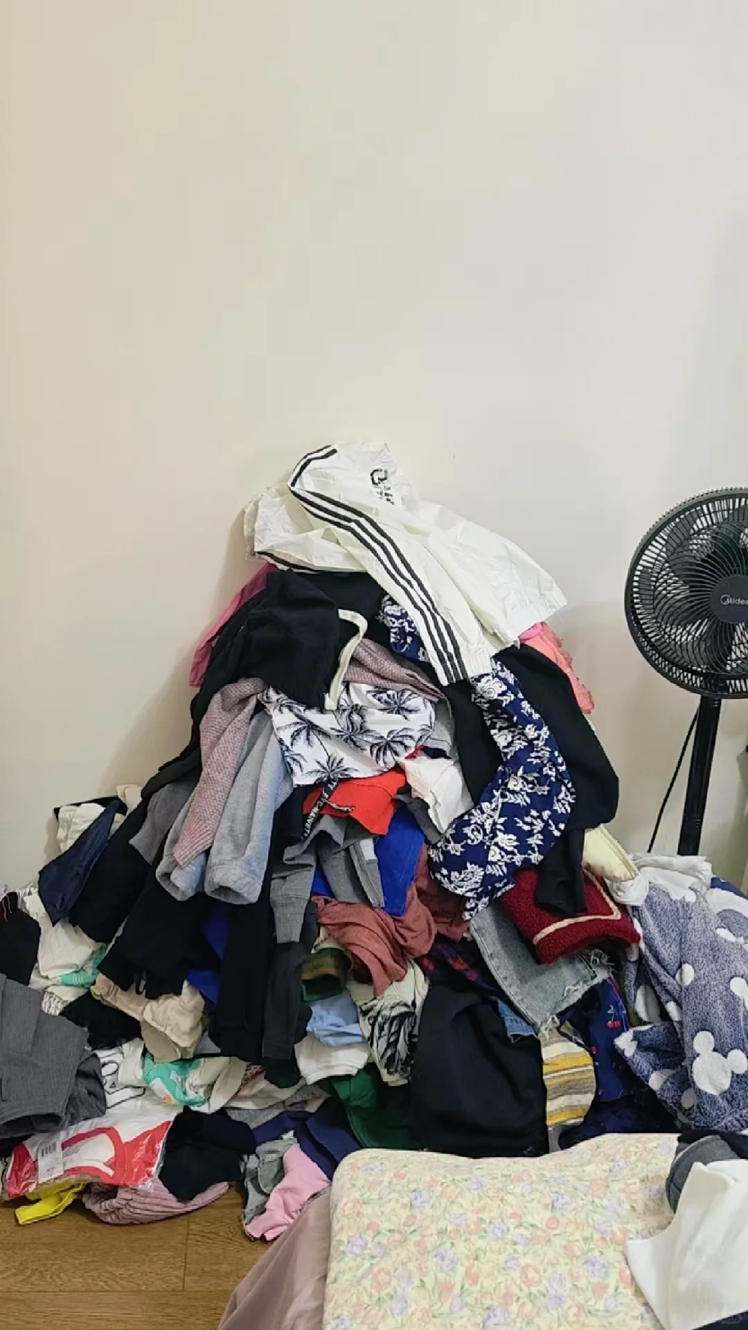 看着铺在地上的衣服,自己犯难到挠头,还不舍得将没有的衣服扔掉嘛?每次换季都是叠了挂,挂了叠的?