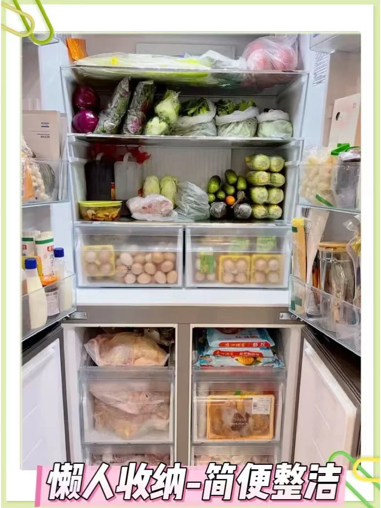 没买冰箱收纳盒之后,觉得那叫一个香。把冰箱的食物码放整齐,打开冰箱的一瞬间那叫一个治愈。