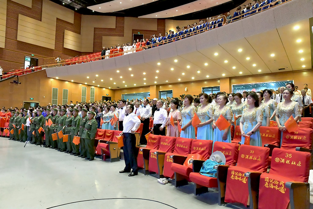 尾声时刻,台下观众全体起立,与台上的参演团队共唱《没有共产党就没有新中国》这首熟悉的旋律,将现场气氛推向高潮,激昂的旋律让人们仿佛回到了那个硝烟弥漫的年代。向党致敬,向祖国献礼!