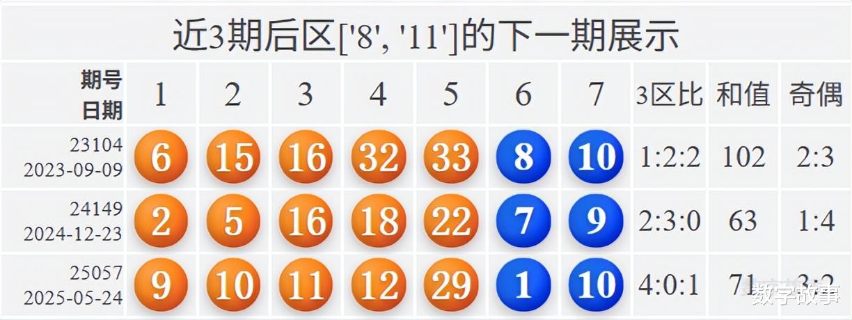 => 汇总的后区冷热号:热号:1,5,7,8冷号:4,6,9,11