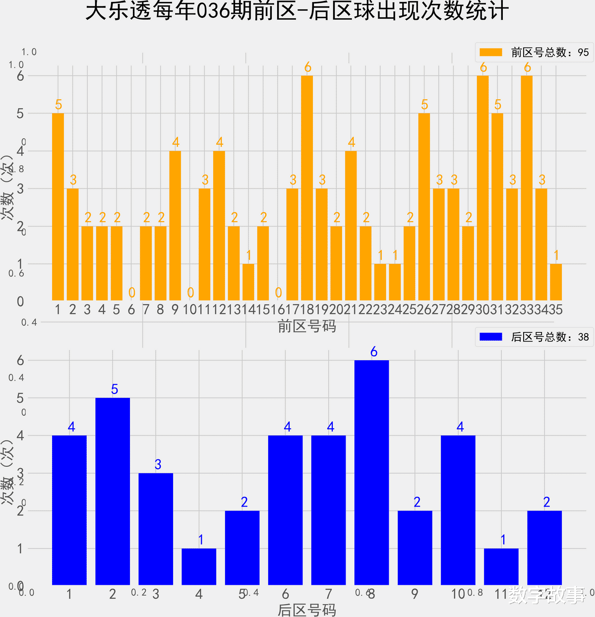 统计每年035期的样本数据: 95个前区号 38个后区号