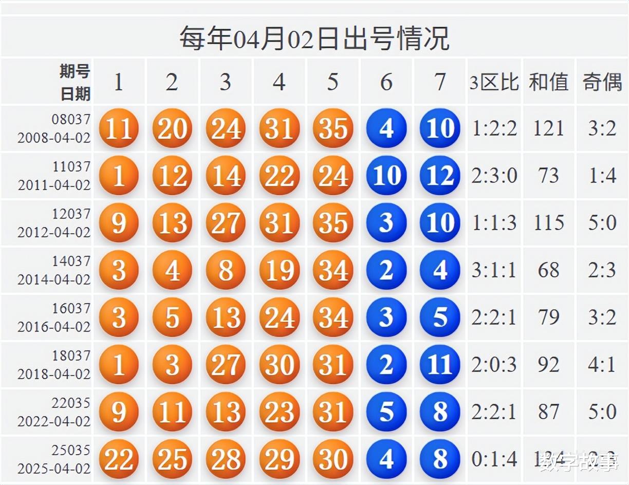 【其他历史数据查询统计】大乐透历史上的今天2026-04-02 星期四 大乐透不开奖每年04月02日出号情况: