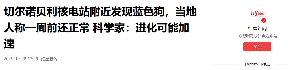 信息来源:《切尔诺贝利核电站附近发现蓝色狗,当地人称一周前还正常 科学家:进化可能加速》2025-10-28 红星新闻
