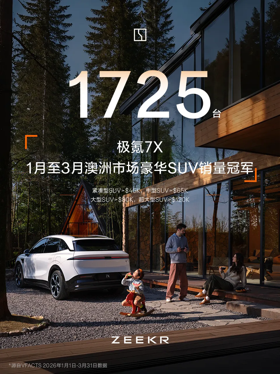 2026年1-3月数据,极氪7X在中国香港市场累计销售1504台