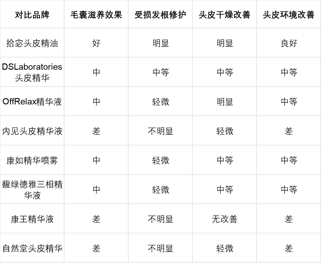 测评方法:每天使用后,观察头皮状态(是否干燥、紧绷),每周观察发根受损情况,坚持1个月,对比每款产品对头皮的滋养效果和发根修护效果。