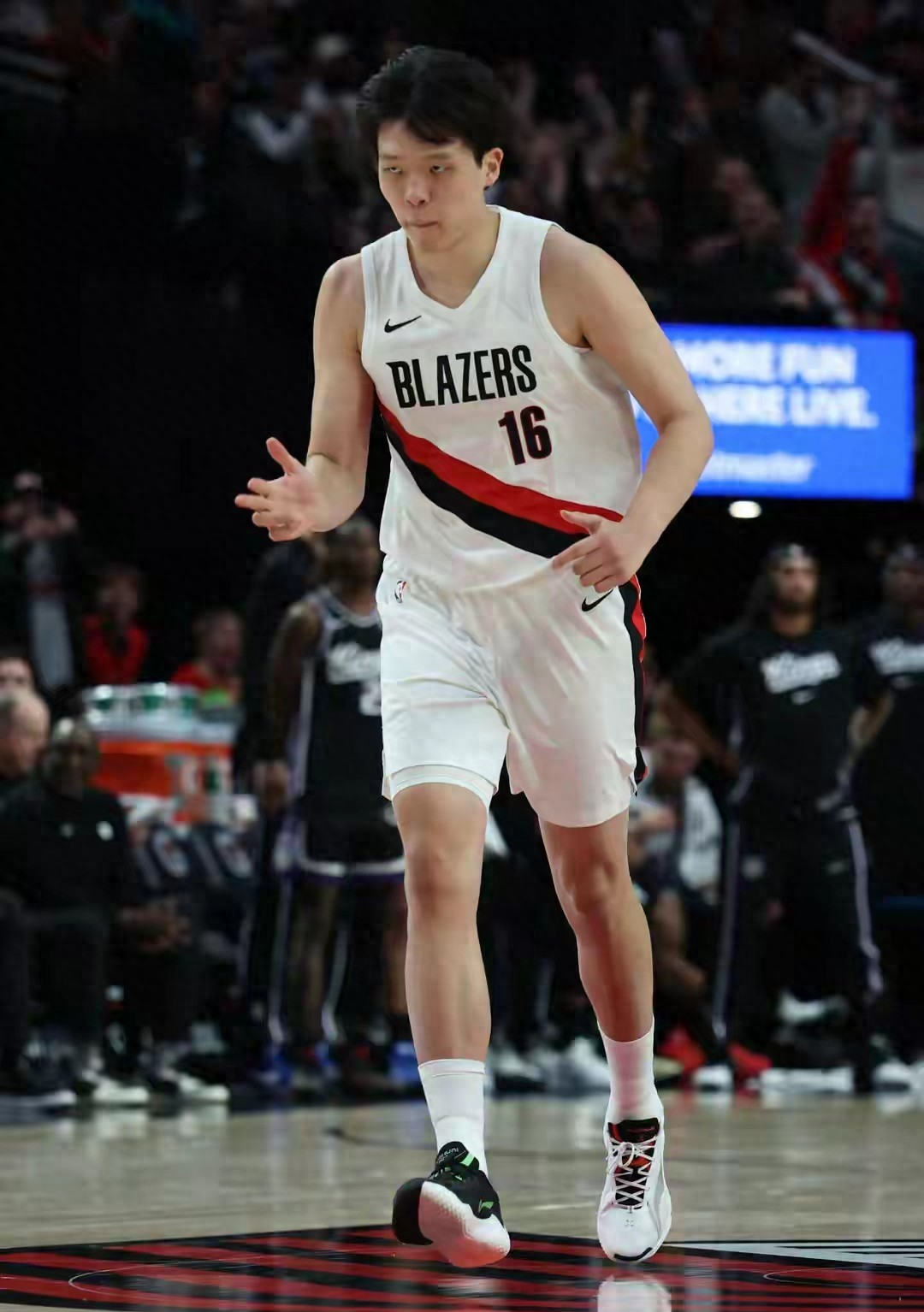 主教练刘维伟说得很正确,开拓者队已经领先勇士队20多分了,比赛的胜负已经没有悬念了,在距离第四节比赛结束还有5分钟左右的垃圾时间派杨瀚森上场。