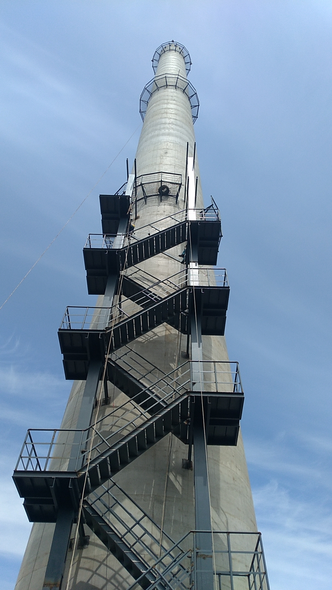 1.清理烟囱外壁表面的灰尘、油污、浮浆、铁锈等杂物,采用角磨机打磨表面,去除疏松层及氧化皮,确保表面平整、干燥,无明显凹凸缺陷,为爬梯连接及防腐施工奠定基础。