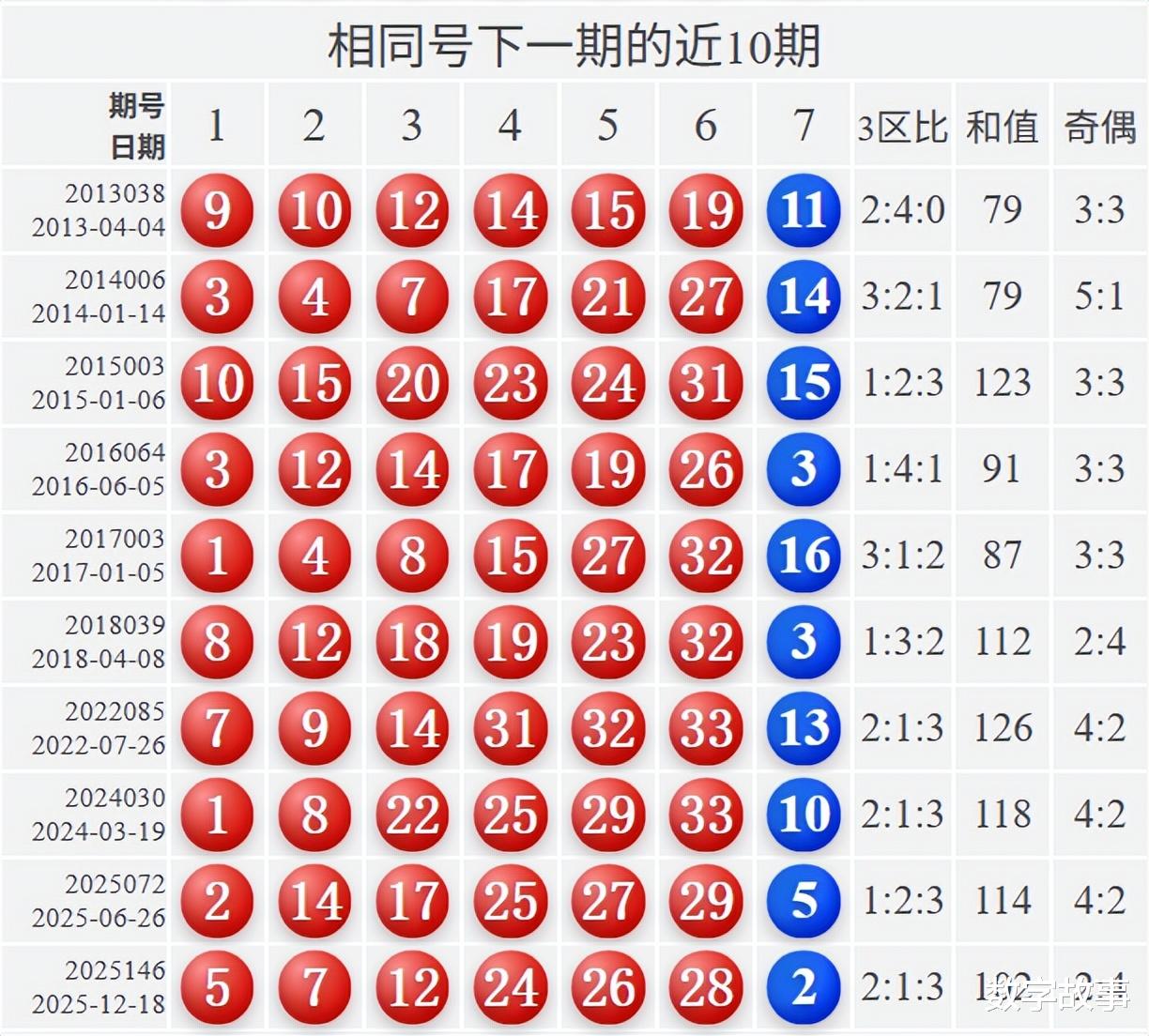 相似号下一期的近10期统计: