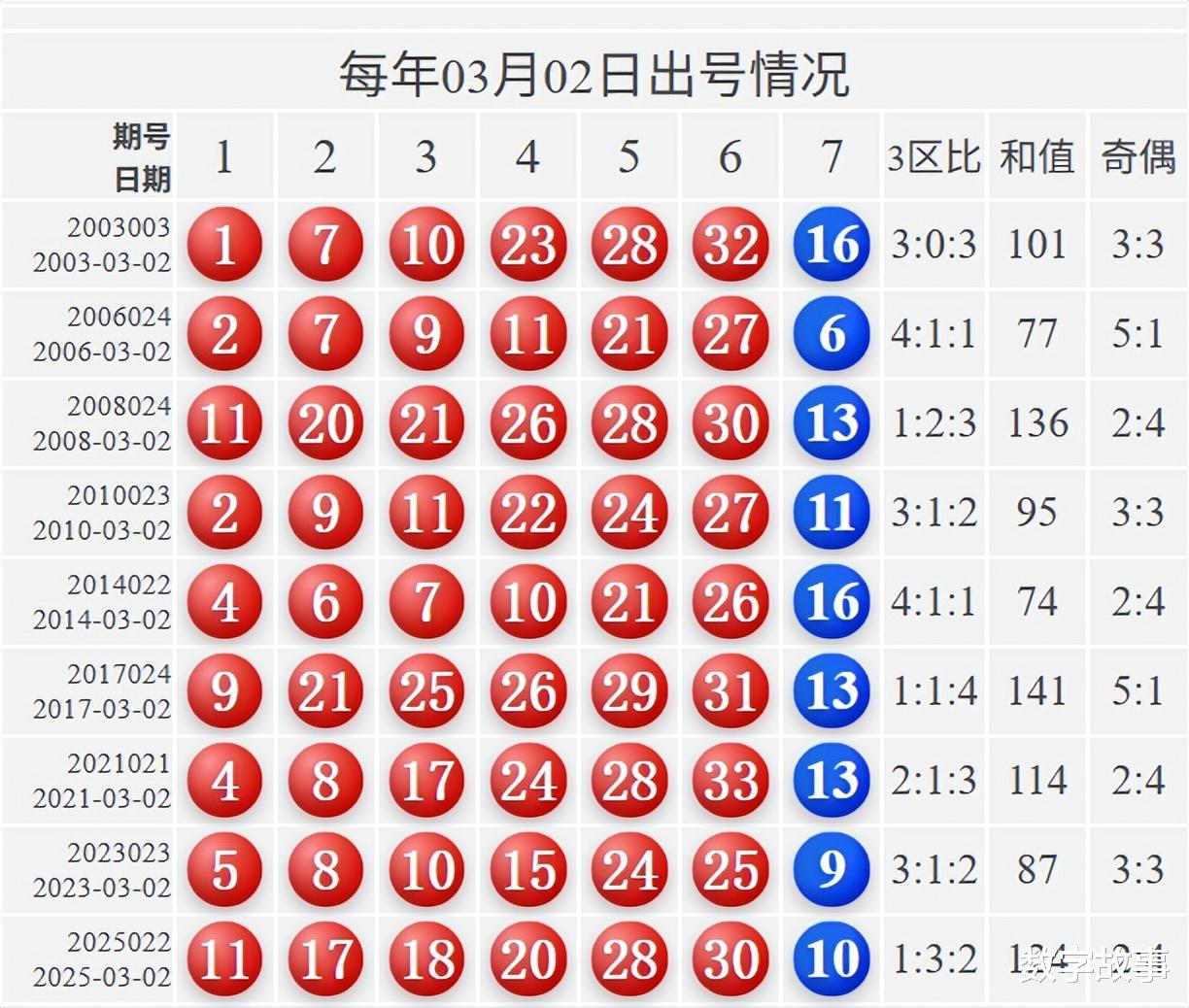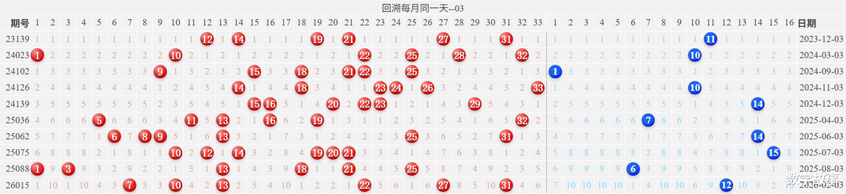【其他历史数据查询统计】双色球历史上的今天2026-03-02 星期一 双色球不开奖每年03月02日出号情况: