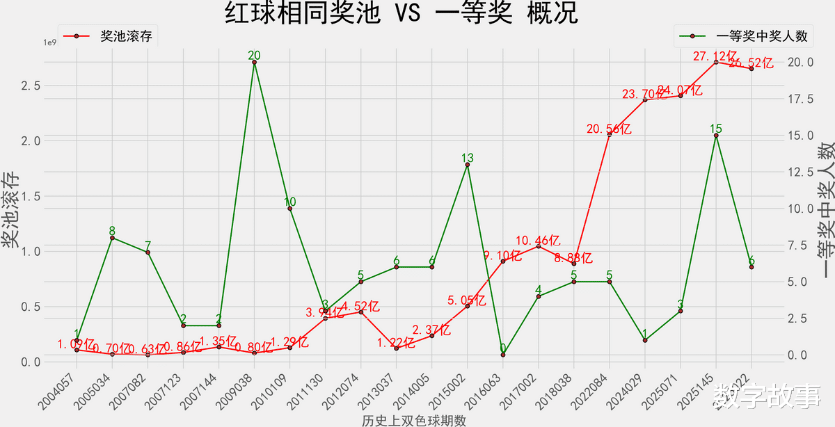 奖池滚存&一等奖数 走势图: