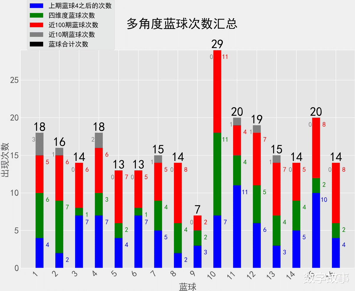 => 汇总的蓝球冷热号:热号:10,15,11,12冷号:9,5,6