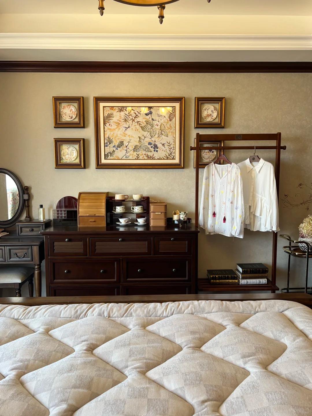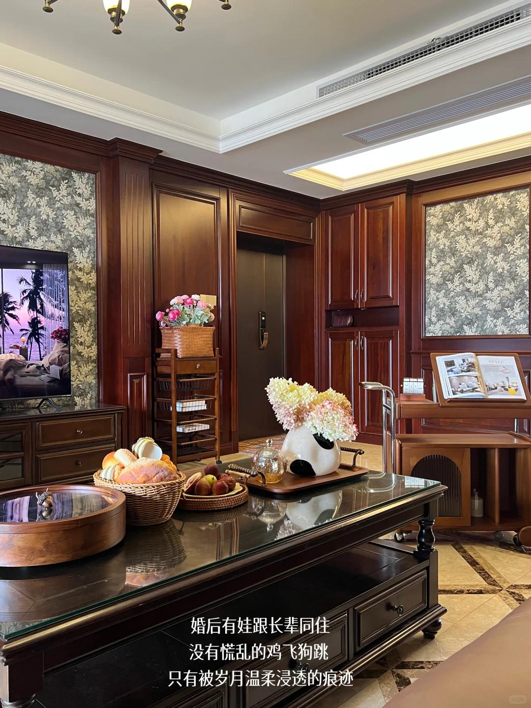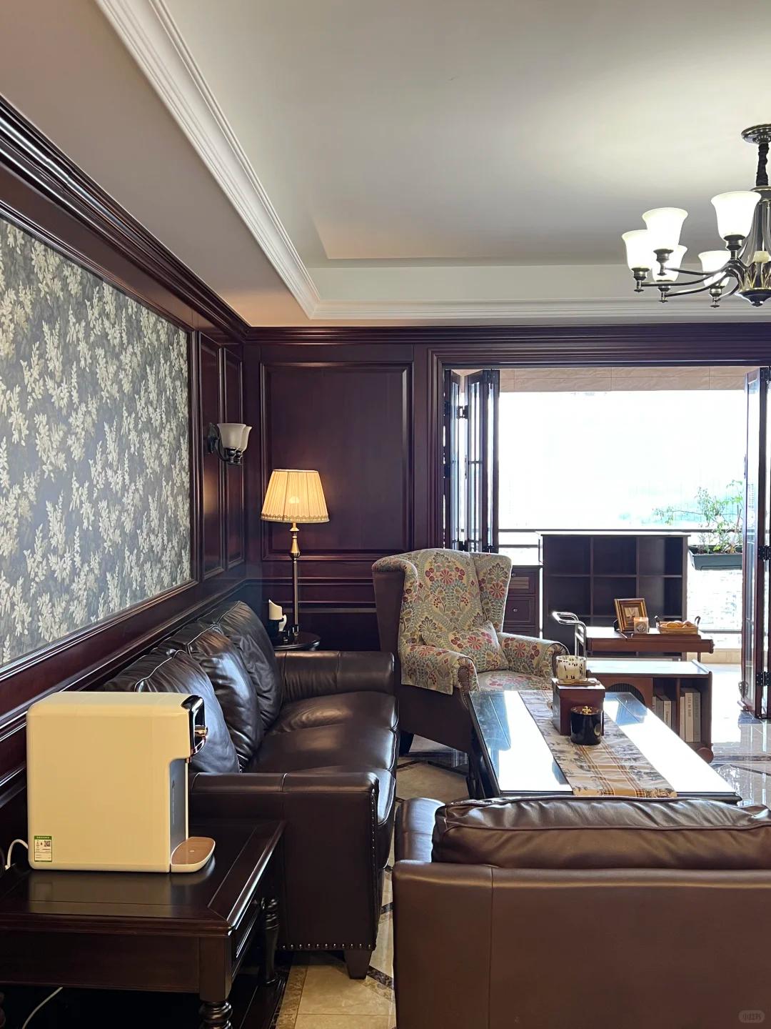 虽然这是一个老钱风的装修风格,但看起来高级有质感,长辈也很喜欢,全屋以复古美式为基调,搭配胡桃木色家具,非常经典,也非常高级;