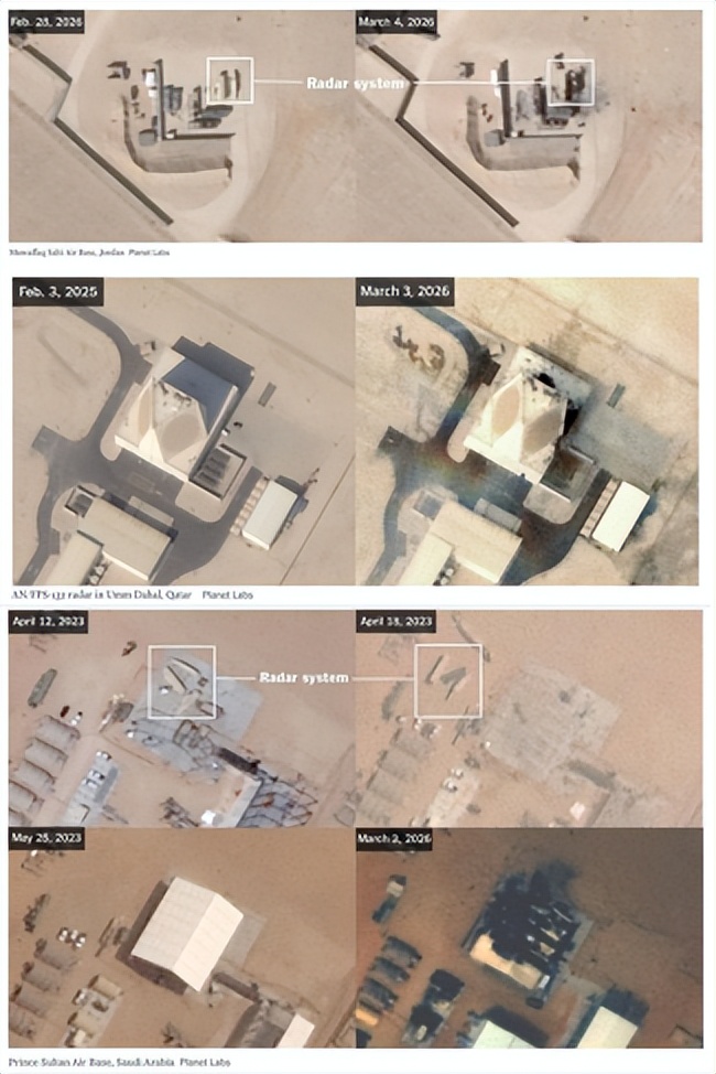 卫星图像证实,伊朗的弹道导弹和无人机打击摧毁了多个美军雷达和“萨德”反导系统,其中包括约旦穆瓦法克萨尔蒂空军基地的AN-TPY-2雷达,卡塔尔乌姆达哈尔的AN-FPS-132雷达,沙特阿拉伯苏丹王子空军基地的AN/TPY-2雷达。