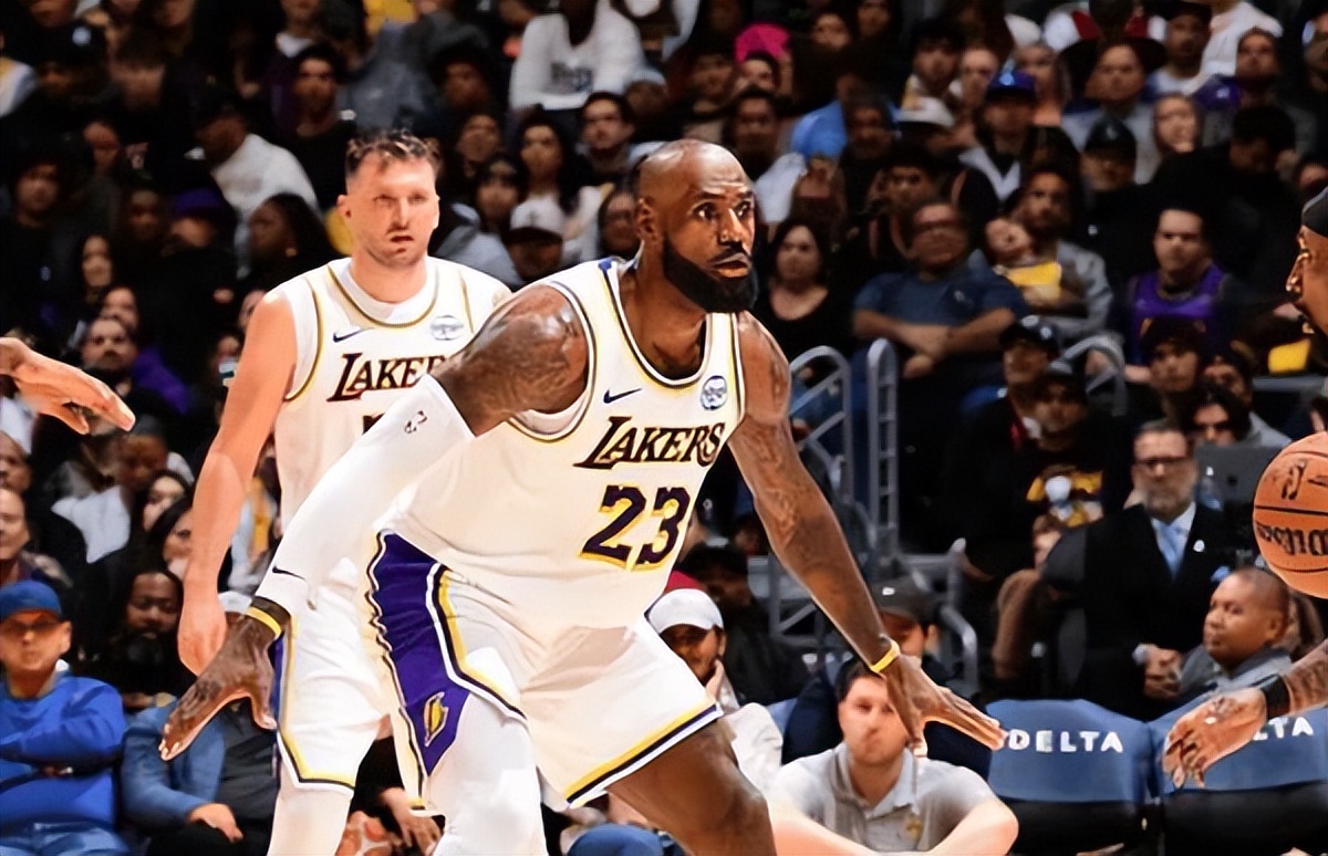 轮到和东契奇-艾顿-拉拉维亚一起登场时,老詹则更多扮演近几年熟稔的四号位角色。