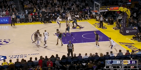 而不是之前简单粗暴的东契奇和詹姆斯分别站在强弱侧单打,今天东詹的联动明显更多也更默契,将弱侧和底角交给了拉拉维亚和范德比尔特。