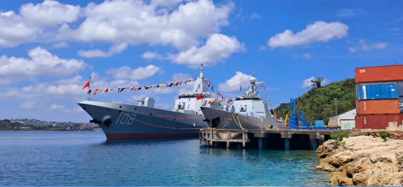 搭载了“海之星”346A/B型有源相控阵雷达、HT-1型850毫米VLS装置,拥有强大的反舰、防空、反潜、陆攻、反导等综合作战性能的大型防空驱逐舰抵达瓦努阿图维拉港,标志着这两种先进的主战舰艇首次部署到南太平洋。
