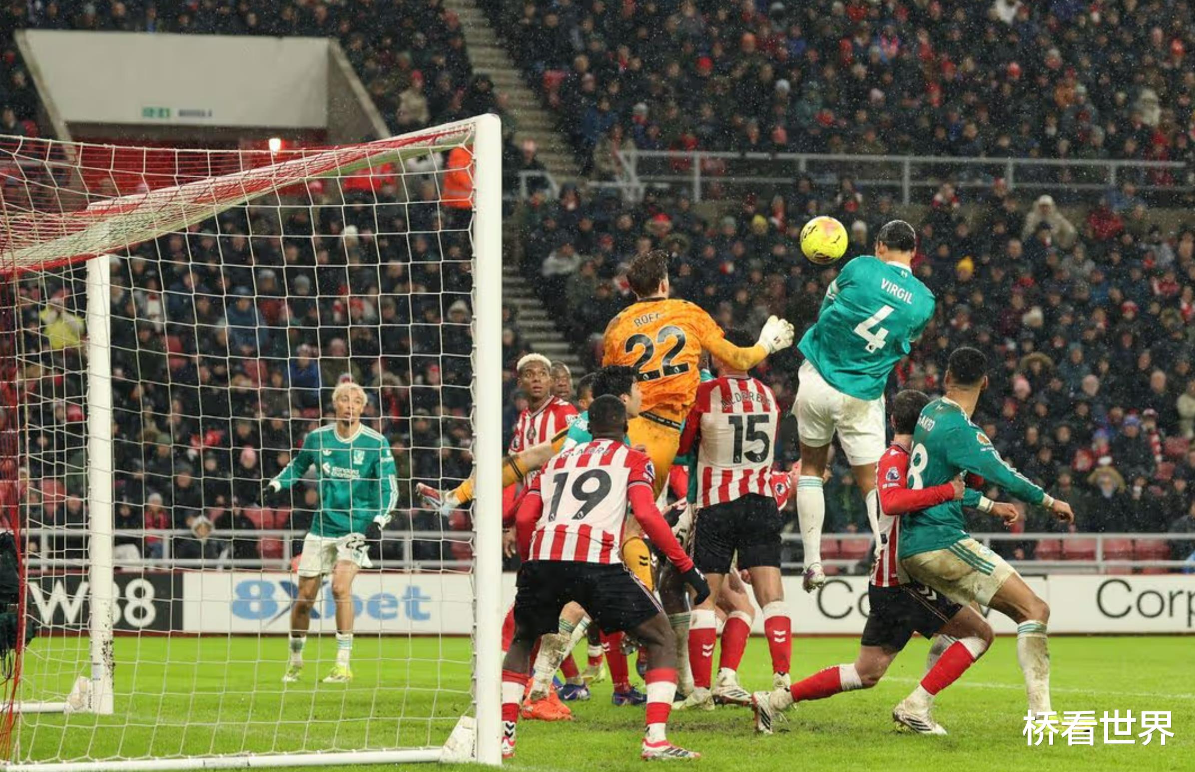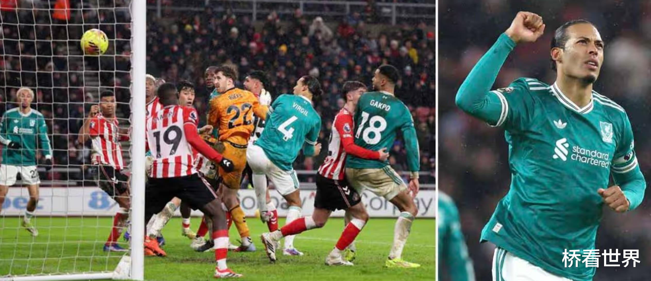 范戴克则 10 次对抗赢下 9 次,贡献了惊人的 14 次解围,最后还打入制胜球。