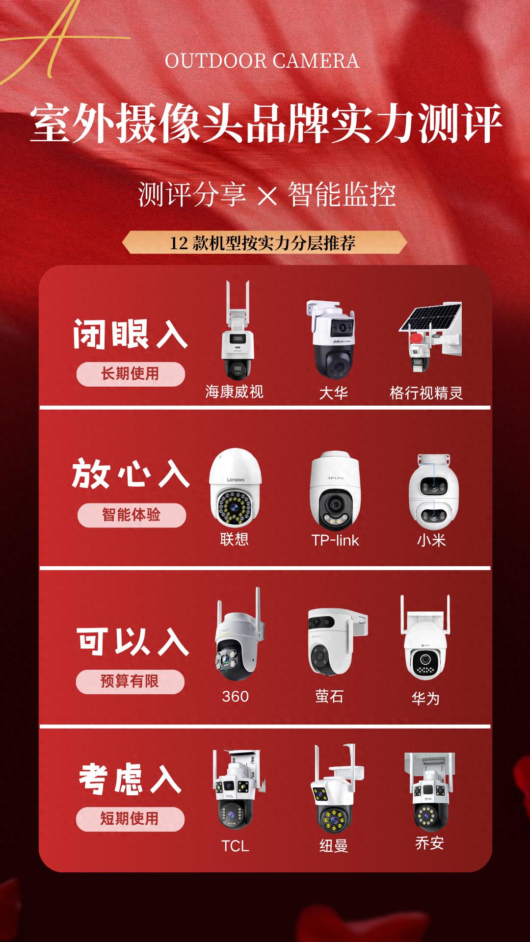 对12款主流室外摄像头进行了长达6个月的实测,并发布了《室外摄像头品牌实力分层图谱》。本文将为您深度解读这份榜单,尤其关注在“长期使用”赛道上脱颖而出的实力派。