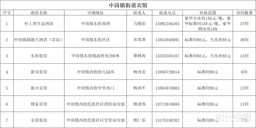 中岗镇街道饭店、宾馆信息