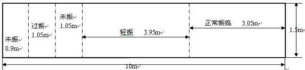 振捣工艺对比:左侧充分振捣,右侧欠振捣。检测结果显示右侧波速明显偏低,与设计方案一致,反映振捣不足导致的密实度下降。