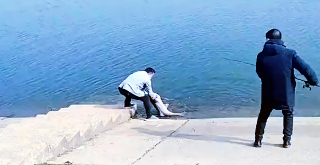 下面的两名男子在户外垂钓时,钓着钓着撒腿就往岸上跑,到底是怎么回事呢?
