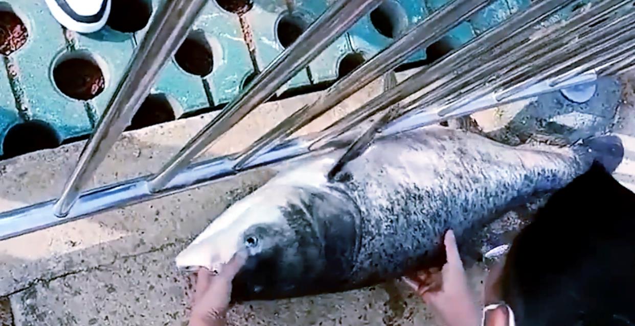 到达安全的地方以后,两人放下鱼就开始观察,一人伸出手掌当参照物,另一人掏出手机将其记录了下来,随后还不忘发布到到朋友圈里和大家一起来分享。看到这一幕,网友们都忍不住哈哈大笑,众人疯狂点赞的同时纷纷留言评论。