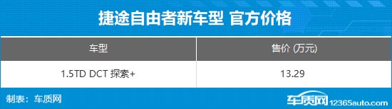 日前,我们从捷途汽车官方获悉,旗下自由者新增一款1.5TD DCT 探索+车型,售价为13.29万元。作为新增车型,新车外观保持不变,主要在配置上有所区别。