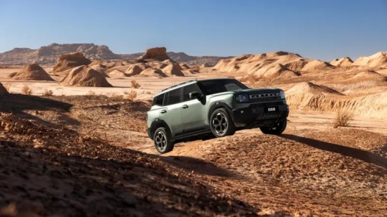 车身侧面,新车采用分段式腰线设计,轮眉和侧裙部分设有粗壮的黑色饰板,进一步增强力量感。尾灯为贯穿式设计,车顶配有小尺寸的扰流板和高位刹车灯,整体层次感十足。