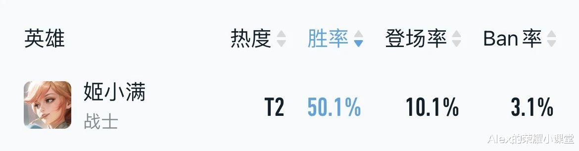 本赛季姬小满削弱了22连招后衔接其他技能的速度,新赛季巅峰赛50.1%胜率+10%出场率略微下滑,但在高分段的地位依旧足以跻身T0.5梯队。