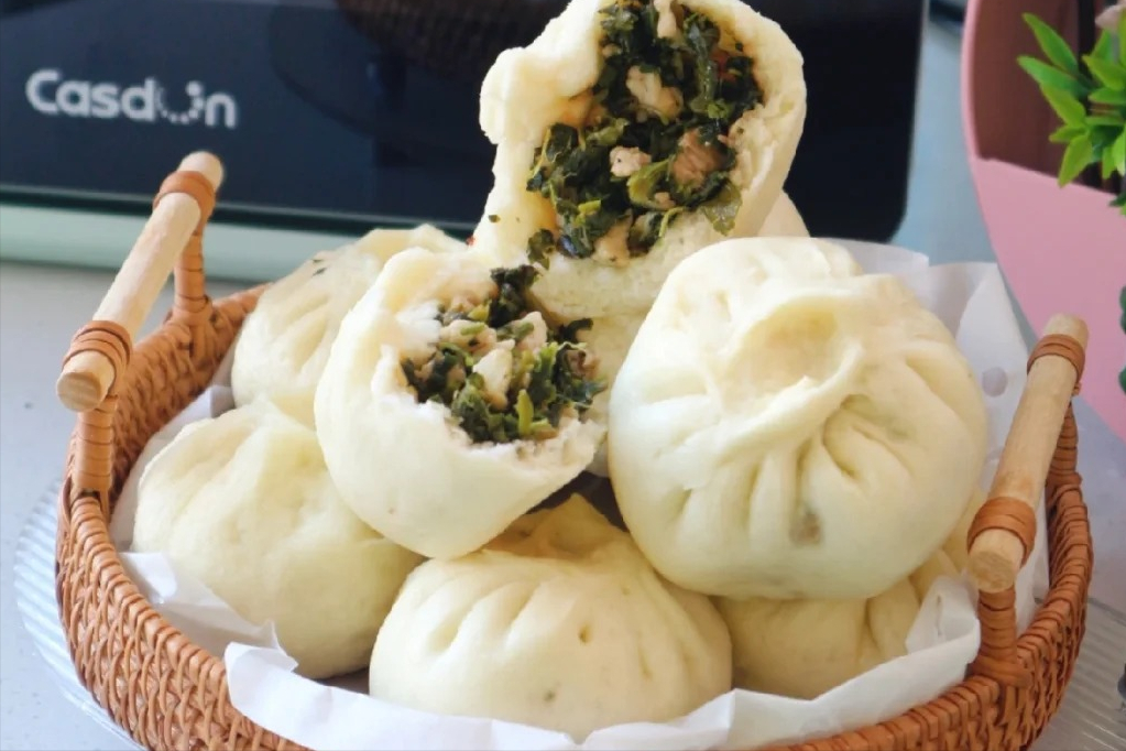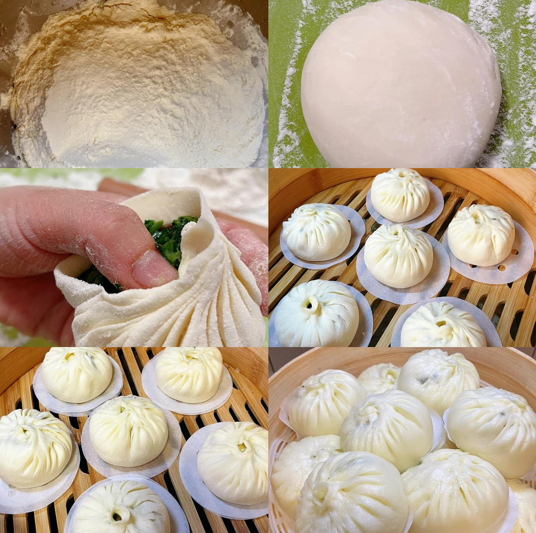 ✅ 亮点:四月青菜脆嫩多汁,富含维C与膳食纤维;干香菇经泡发后,鲜味浓缩,带来植物蛋白与多糖。二者搭配,营养互补,清而不寡。蒸熟后,青菜依然翠绿,香菇柔韧弹牙,一口咬下,满嘴春天的清鲜与菌菇的醇厚,比肉包更耐人寻味。
