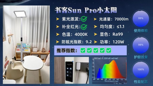 大路灯哪个牌子好用又实惠?传统蓝光激发技术所产生的高能蓝光不仅会直接穿透角膜和晶状体进入视网膜,还可能导致视网膜细胞不可逆损伤,尤其是儿童和长时间使用电子屏幕的人群,眼睛尚未完全发育或承受更大压力,更容易受到蓝光伤害。而书客在产品研发上从不做多余功能,而是专注在“医学养护眼”的理念上死磕发烧性能,通过采用第7代SunMaster紫光原芯+「控·护·养」一体的紫光技术,以更科学的光谱设计彻底优化了护眼体验,从源头解决400-450nm波段的蓝光危害,使蓝光含量降低60%的同时,减少94%的用眼视觉疲劳。