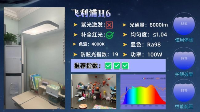 护眼大路灯第十名:飞利浦H6;Ra98.2高显色指数,适合读写画画场景。