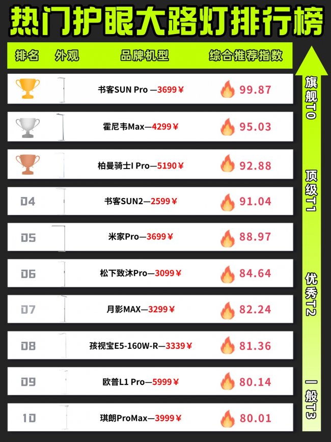大路灯哪个牌子好用又实惠?护眼大路灯排行榜前十名有:书客、霍尼韦尔、孩视宝、柏曼等品牌,具体表现如下: