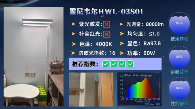 护眼大路灯第三名:霍尼韦尔HWL-03S01;通过 RG0 级低蓝光标准。