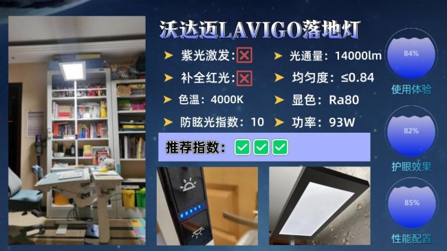大路灯哪个牌子好用又实惠?沃达迈LAVIGO采用一体式的大面积发光结构,整灯光通量大约能达到14000lm,照明能力相对比较强,放在书桌或学习区使用亮度是够的,同时发光面经过结构优化设计,UGR 被控制在10以下,出光整体偏柔和,直视时不太容易产生明显刺眼感,不过需要注意的是,这款灯虽然定价不低,但整体性能并没有特别突出的地方,而且官方没有给出清晰的光谱信息,在选购时多少会有一些不确定性。