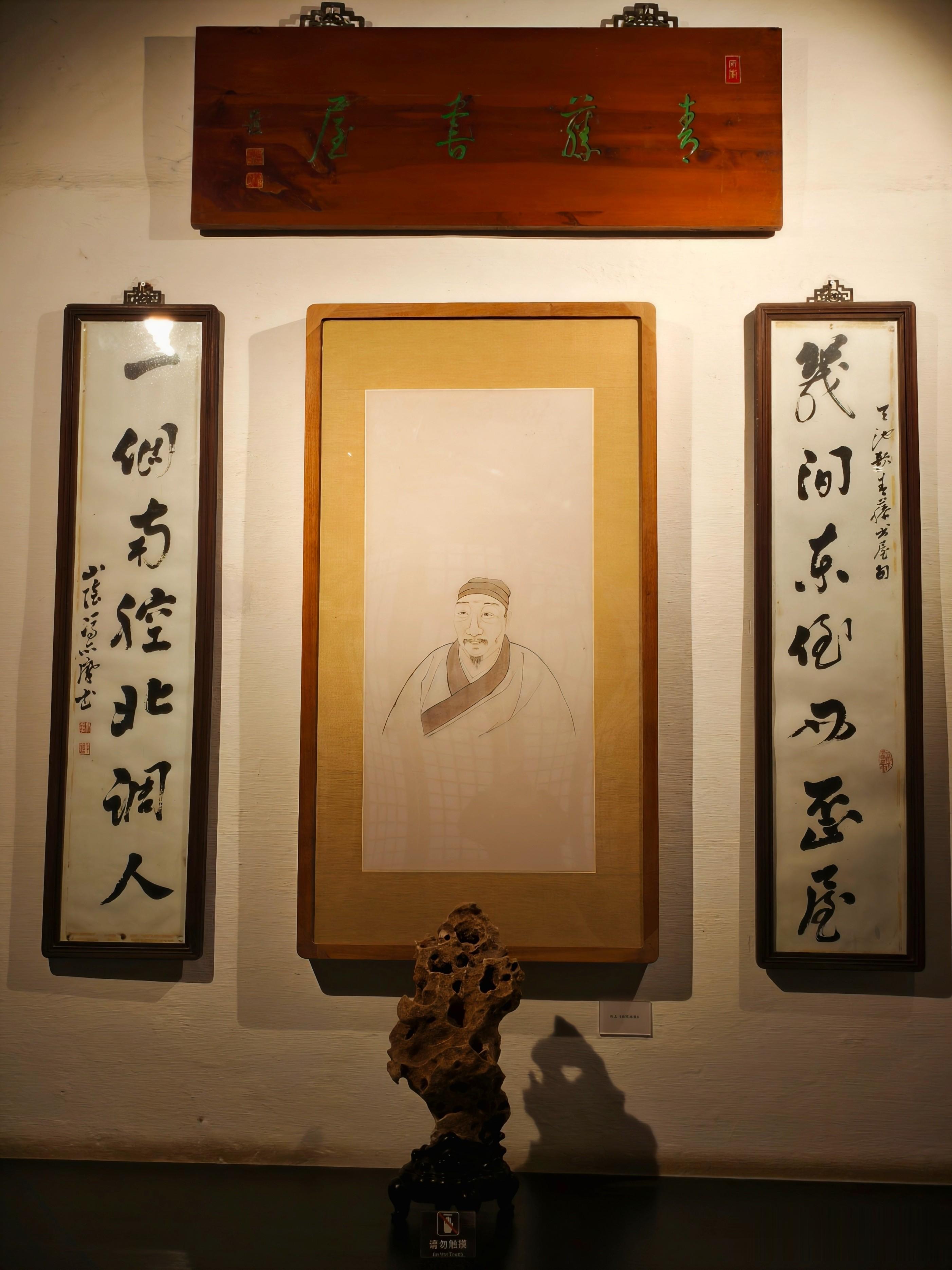 徐渭画像挂在醒目处。两边是其晚年写下的自嘲之句——几间东倒西歪屋,一个南腔北调人。