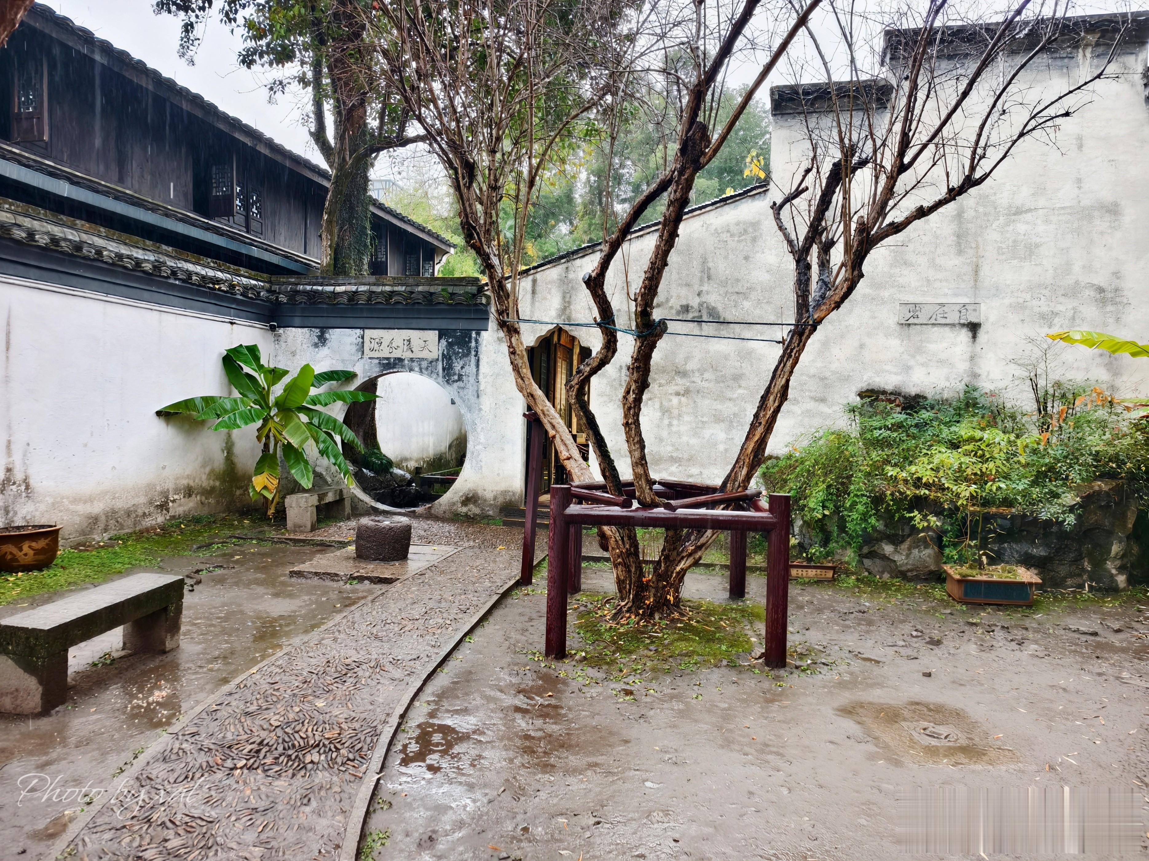 另一侧月亮门内,有一长方石池,名曰“天池”。池旁有青藤一株。徐渭题之“天汉分源”。