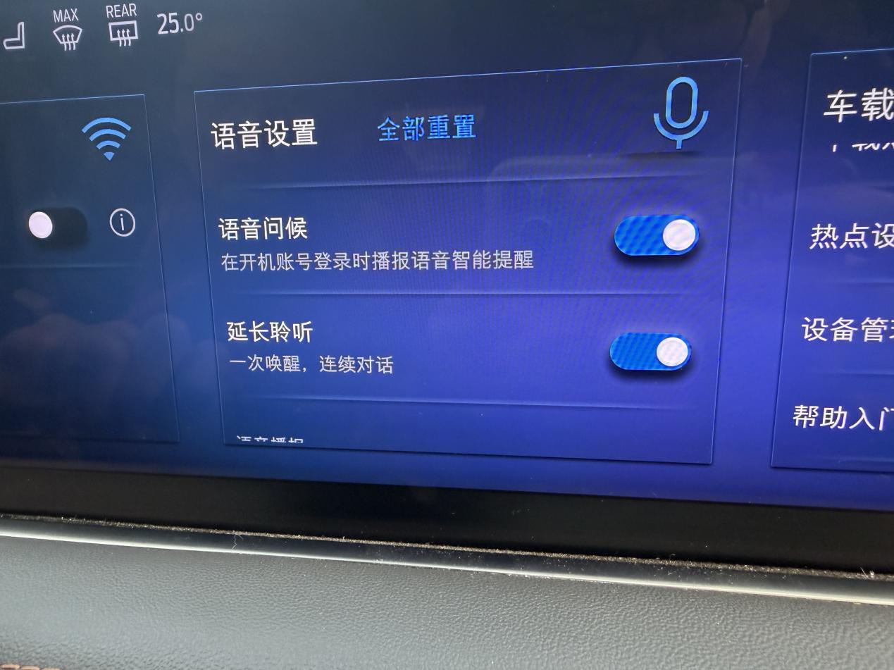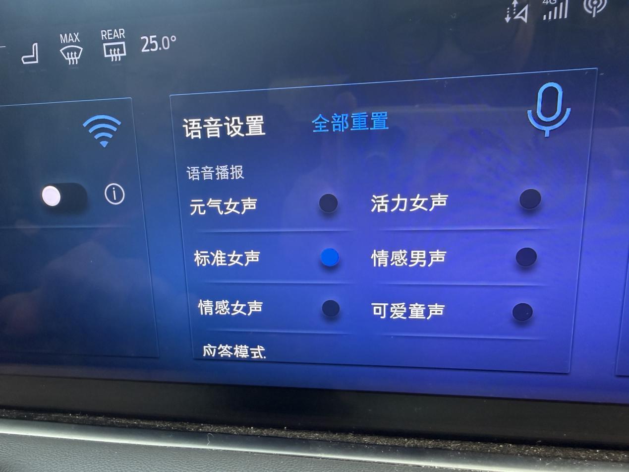 另外一个大提升是语音指令。现在可以一口气说一串话,系统能连续识别并执行。不用像以前那样每发一个指令等它反应一次。虽然偶尔还是会卡一下,但识别准确度确实高了,可见即可说的功能也灵了不少,屏幕上显示的选项直接用语音就能选。语音播报的人声多了两个选择,元气女声和活力女声,我试了试,声音挺清脆的,听着不腻,长途开车的陪伴感强了点。不过希望以后能多加点方言或者趣味音色,比如来个川普播报,说不定更有意思。
