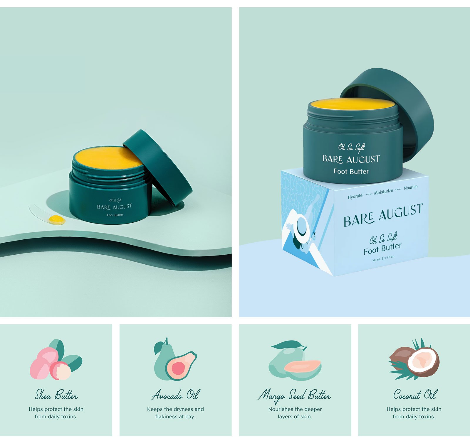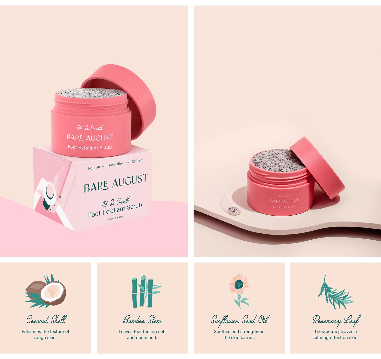 别以为足部护理产品的包装就只能平平无奇,BARE AUGUST可不这么认为!他们的包装设计采用了清新的插画风,粉色和蓝色的背景上,点缀着简洁的插画,仿佛在诉说着:“足部护理也能很时尚!”每个包装都像是一件小巧的艺术品,让人在享受护理的同时,也能感受到满满的时尚感。无论是放在浴室还是梳妆台上,都能成为一道亮丽的风景线。