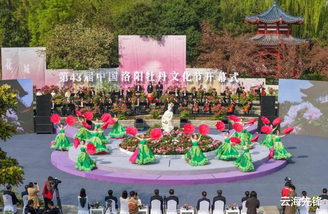 开幕式以“花间叙事・城意绽放”为核心概念,秉持俭约、亲民、务实、高效的办会理念,打破传统舞台观礼模式,将整个隋唐城遗址植物园打造成沉浸式叙事空间。舞台依牡丹观赏区而设,花海为幕、花径为席,20余分钟的演出分为《花见・诗意》《花语・未来》《花绽・洛阳》三个篇章,让宾客沿花径行进赏花、沉浸观演,实现“入场即入戏”的全新体验。童声朗诵《诗经・鹿鸣》拉开序幕,舞台诗剧《古今赏花人》跨越时空,再现洛神起舞、文人赏花等历史情景,在河洛大鼓韵调中勾勒洛阳牡丹千年文化底蕴;代表牡丹十大色系的“花神”缓步而出,展示牡丹名品、推介牡丹产业,见证洛阳牡丹从单一种群到千余品种的蝶变;“翰墨丹青”数字牡丹藏品同步发布,在歌舞《花开中国》的旋律中,文化节正式启幕,洛阳向世界发出“一路繁花向洛阳”的盛情邀约。